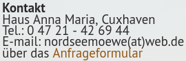 Des Weiteren finden Sie in Cuxhaven den Biosupermarkt "Aleco" mit Biobistro, ein Reformhaus, den 2 x wöchentlich stattfindenen Wochenmarkt mit regionalen Produkten, das Thalassozentrum, ein Erlebnis-Wellenbad mit Kurzentrum und Saunalandschaft, das Nationalparkzentrum u. v. a. m. (Landkarte ganz unten)